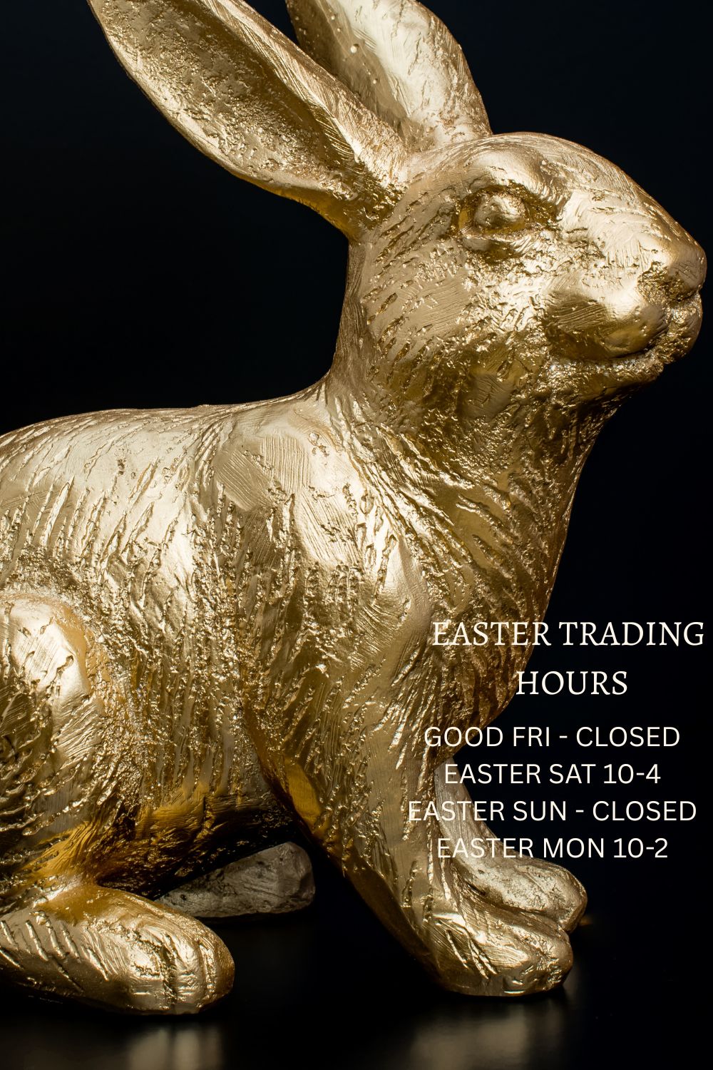 We will be closed Good Friday + Easter Sunday, but we will be open on Easter Saturday 10am to 4pm and Easter Monday 10am-2pm.