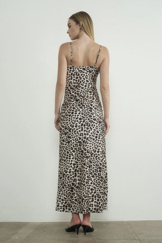AARON + AMBER OCELOT SLIP MAXI DRESS