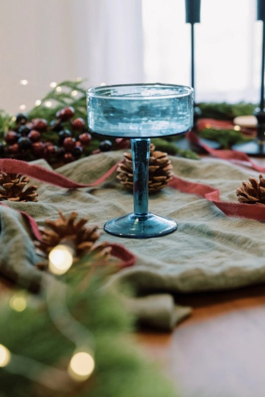 CREATIVE WOMEN HANDBLOWN HAMMERED COUPE COCKTAIL GLASS BLUE
