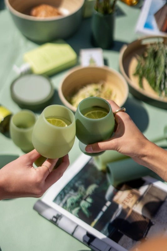 PORTER GREEN SAGE + OLIVE SILICONE WINE GLASSES SET OF 2