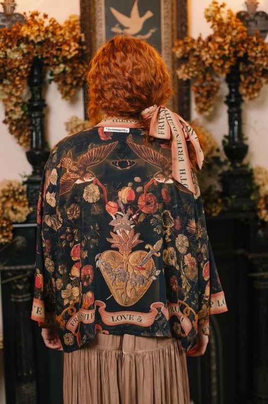 MARKET OF STARS HEART OF GOLD OPERA DUSTER KIMONO WITH SACRED HEART