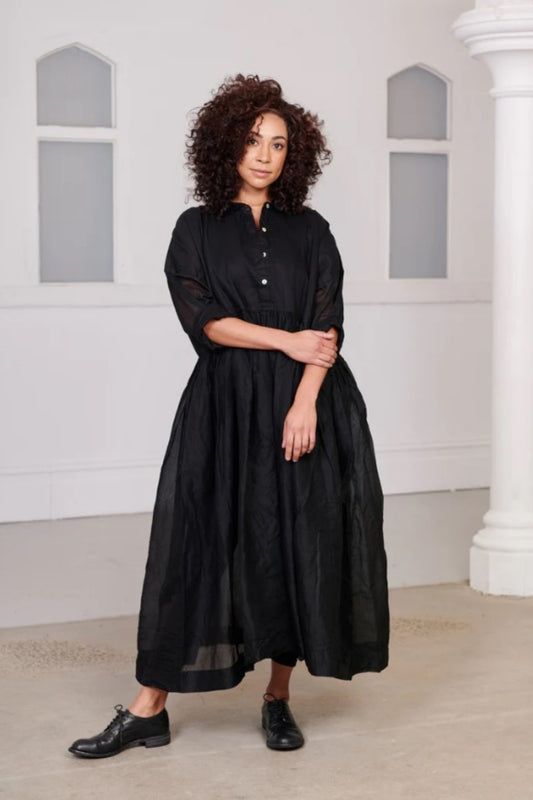 MEG BY DESIGN EDITH COTTON ORGANDY LONG DRESS BLACK