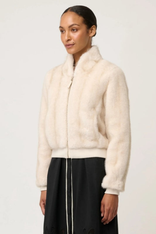ONCE WAS CHRYSTA FAUX FUR RIBBED DETAIL BOMBER JACKET
