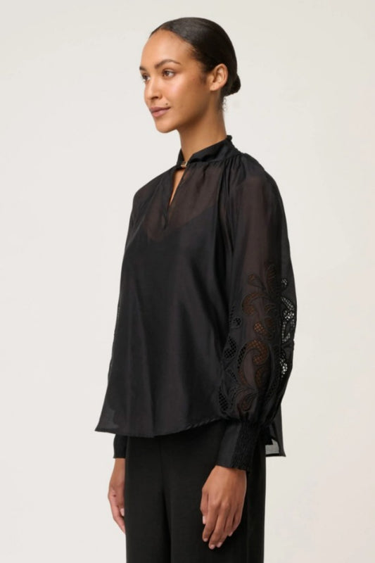 ONCE WAS COTTON SILK EMBROIDERED SIMONA BLOUSE