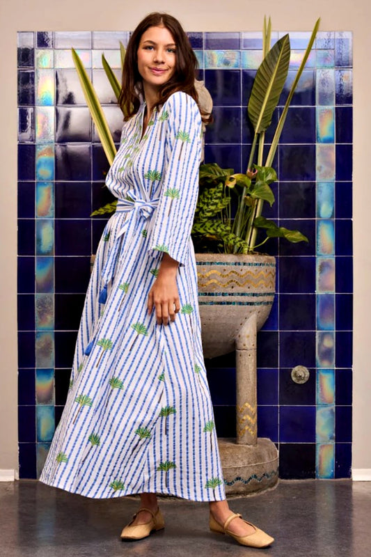 NIMO WITH LOVE LEMON DRESS IN BLUE PALM STRIPE