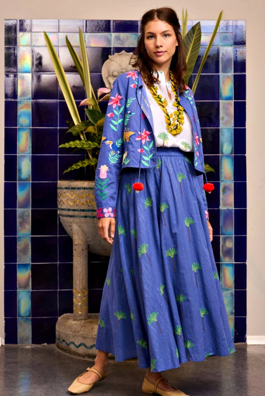 NIMO WITH LOVE PINE JACKET WITH MEXICAN STYLE EMBROIDERY BLUE