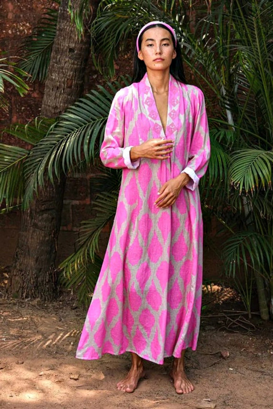 NIMO WITH LOVE SANDALWOOD DRESS IN IKAT PINK LINEN