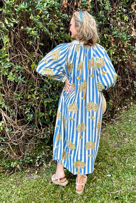 PRE-ORDER ROSELLE CABANA BUTTON THROUGH DRESS BLUE