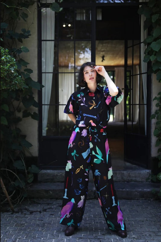 NIMO WITH LOVE CHILI PEPPER COAT WITH MEXICAN EMBROIDERY NAVY