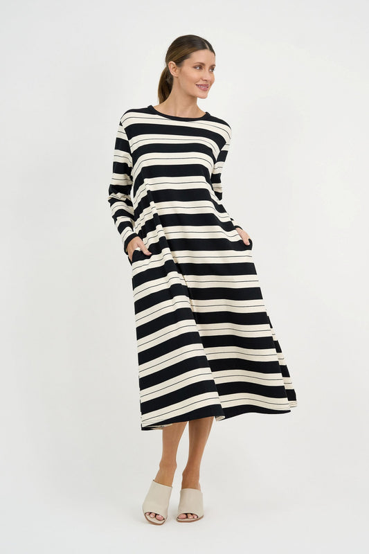 NIMO WITH LOVE LEMON DRESS IN BLUE PALM STRIPE