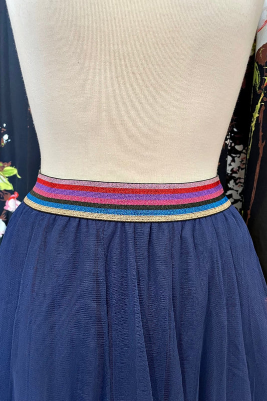 QUEENIE TANGO FOXTROT TULLE MIDI SKIRT NAVY