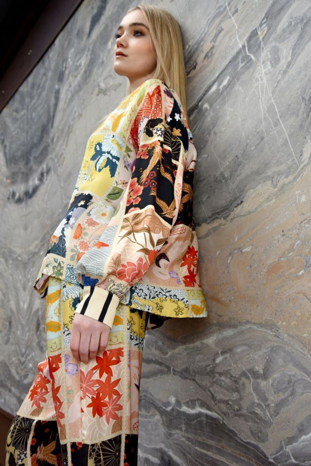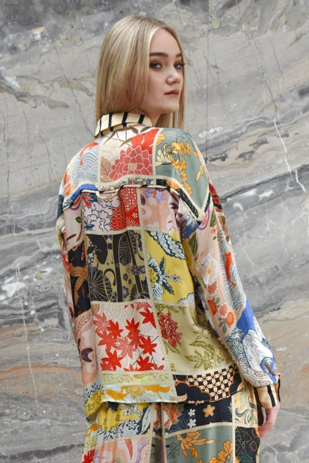 Breezy elegance defines the ‘Under the Sun’ Shirt, crafted in our 'In the Square Tonight' viscose satin. A button-through front and classic collar offer timeless structure, while drop shoulders and blouson sleeves bring relaxed, sculptural volume. Finished with a fixed cuff and button fastening, it’s a versatile piece that pairs effortlessly with skirts, pants, or layered looks.