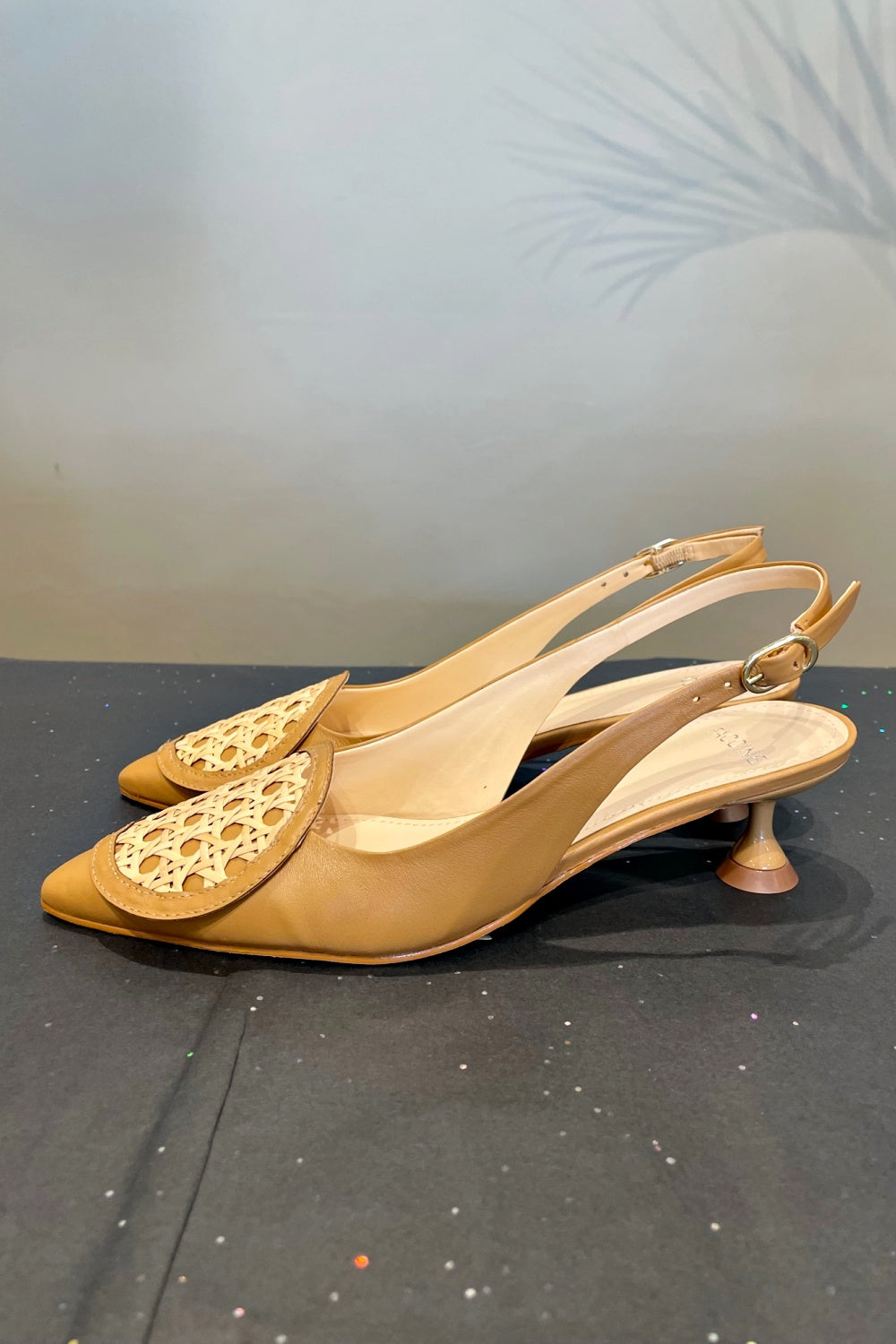 FACCINE RATTAN SLINGBACK HEELS CAMEL