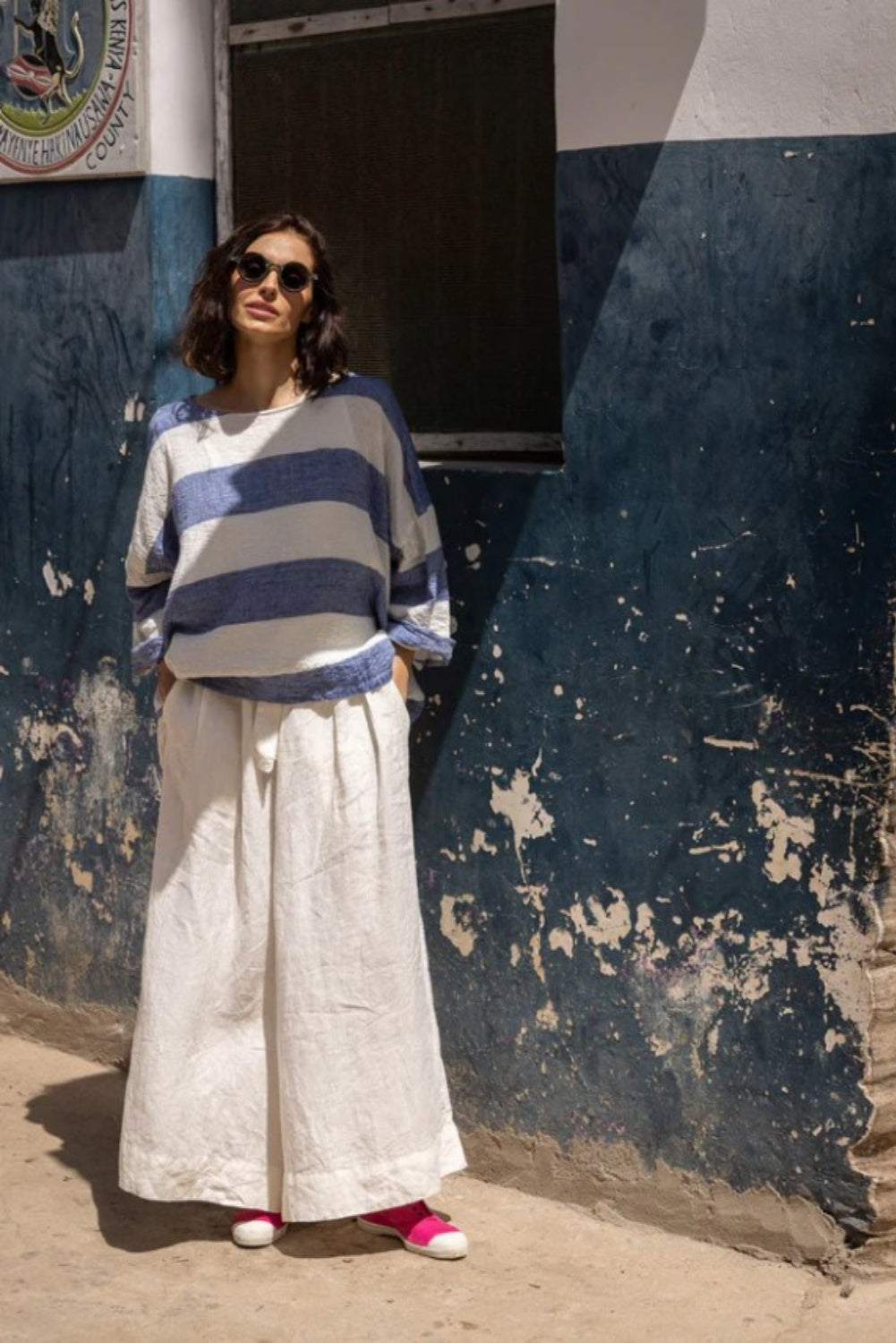 The Harriet trousers are crafted from a beautiful medium weight linen They feature a wide-leg design and two spacious pockets. The waistband includes a linen belt and is elasticised at the back. The cut offers the flexibility to be worn either low or high waisted. The feel of the linen is incredible and along with the cut and material allow for breathability in the warmer months and the ability to pop on a pair of thermal tights underneath for warmth in the colder months.