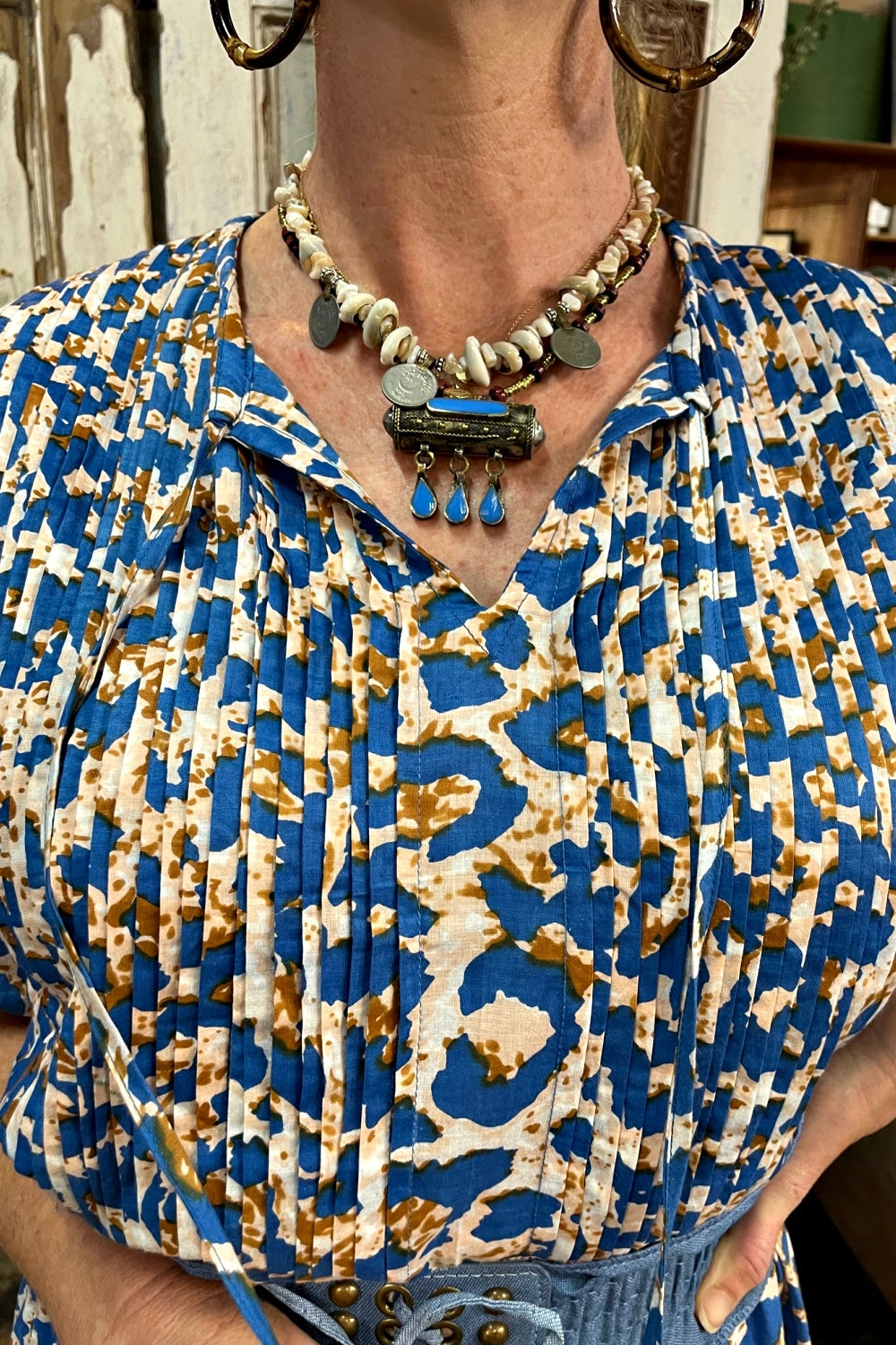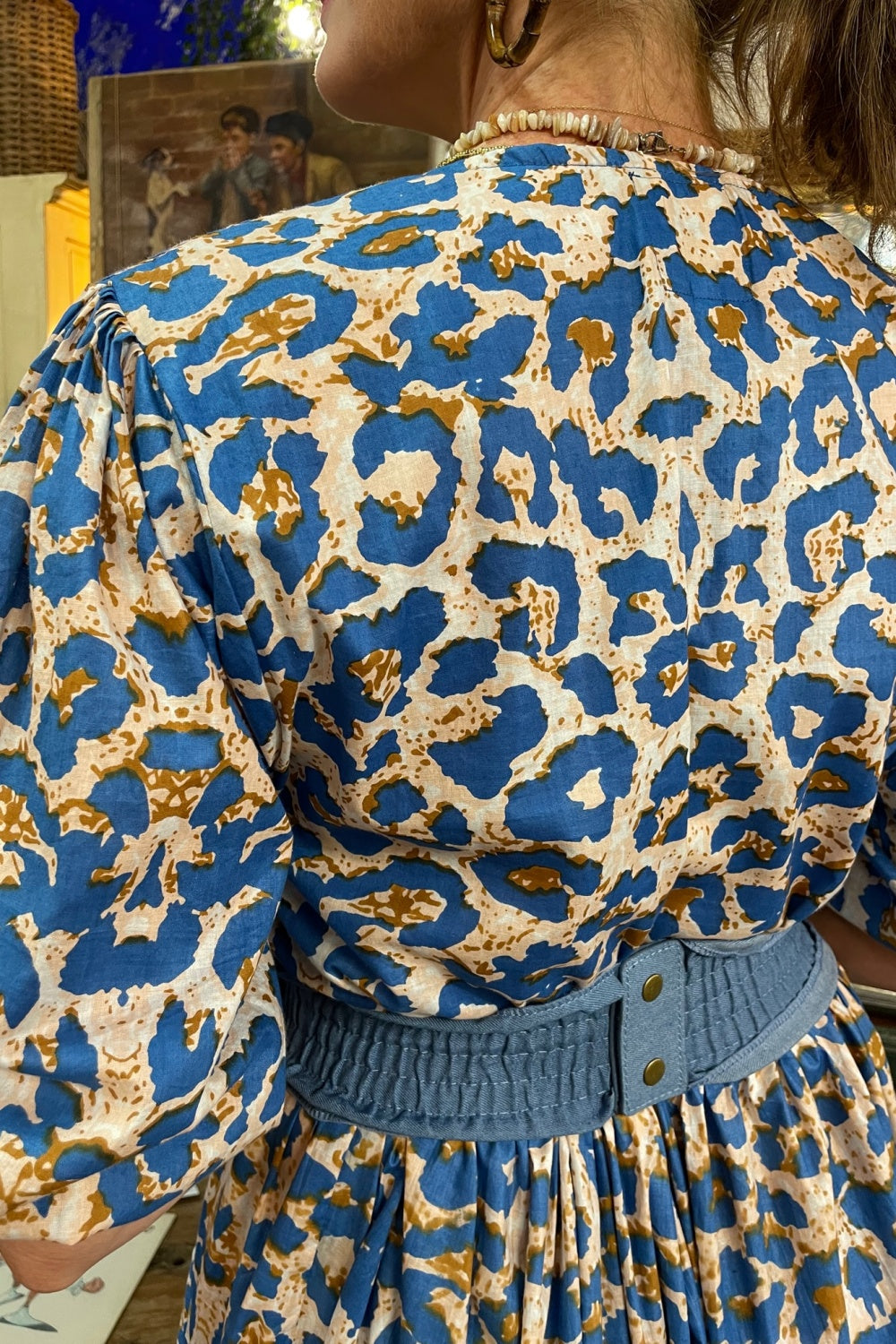 Our bestselling Halcyon Dress is back in the pretty Blue Leo print with handmade tassels It's a great, relaxed, casual style in a lightweight, soft cool cotton, perfect for the long hot summer.